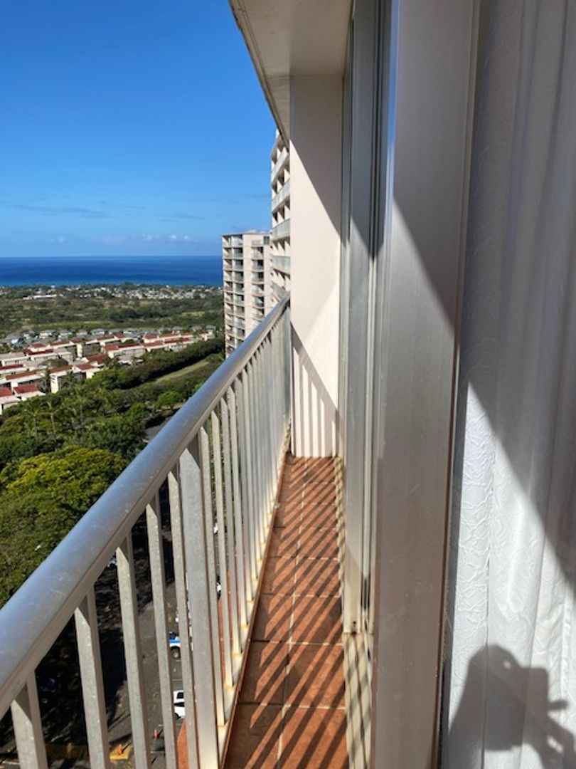 Fantastic ocean, mountain, and golf course views; furnished 16th-floor 515sf studio; 74sf lanai; one bath; corner unit near elevators; one unassigned primary parking stall; additional storage; community laundry; new carpet and vinyl flooring & paint; bus stop in front of the complex; 24-hour security; heated pool; BBQ & picnic area; rent includes central a/c, cable, water/sewer, electricity, and internet.